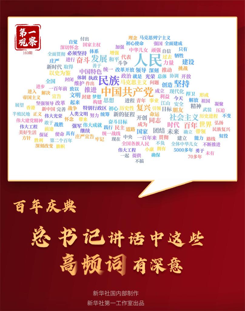 我們通過詞云大數(shù)據(jù)梳理講話中的高頻詞發(fā)現(xiàn),出現(xiàn)86次“人民”、55次“民族”、54次“中國共產(chǎn)黨”……這充分印證中國共產(chǎn)黨的初心和使命,就是為中國人民謀幸福、為中華民族謀復興。