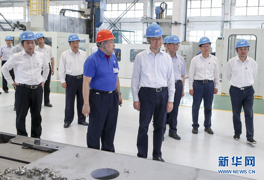 7月5日至6日,中共中央政治局常委、國(guó)務(wù)院副總理韓正先后在山東東營(yíng)、濟(jì)南調(diào)研。這是7月6日,韓正在濟(jì)南二機(jī)床集團(tuán)有限公司考察企業(yè)生產(chǎn)運(yùn)營(yíng)和技術(shù)研發(fā)情況。新華社記者 姚大偉 攝