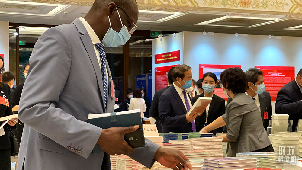 △與會外賓翻閱現(xiàn)場書籍。(總臺央視記者盧心雨拍攝)