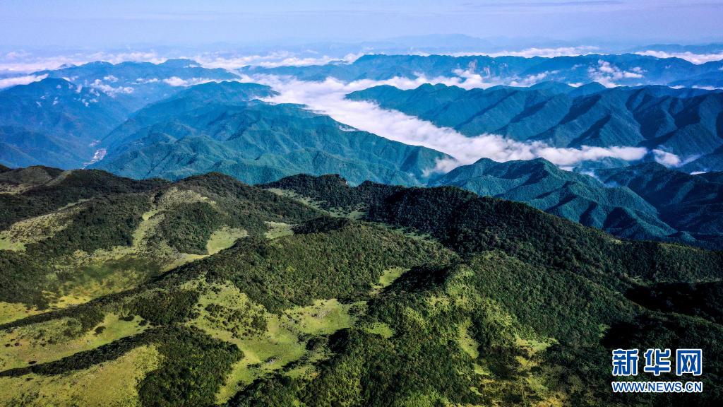雨后初霽,位于陜西省漢中市留壩縣的紫柏山國家森林公園內(nèi)云霧升騰,宛如畫境(2020年9月17日攝,無人機照片)。 新華社記者 劉瀟 攝