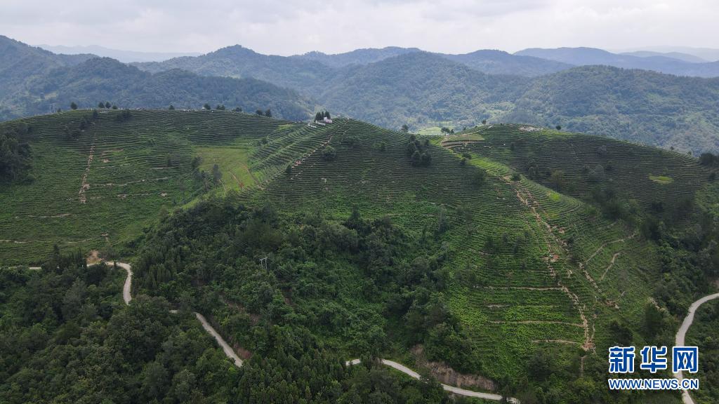 這是陜西省安康市平利縣老縣鎮(zhèn)蔣家坪村女媧鳳凰茶業(yè)現(xiàn)代示范園區(qū)(無人機照片,2021年7月24日攝)。 新華社記者 徐欽 攝