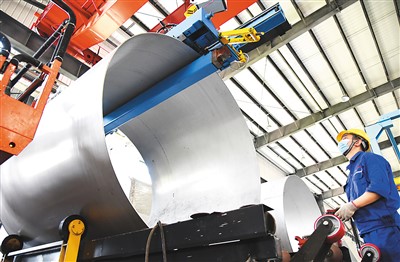 上半年,江蘇GDP達55199.63億元,位居全國第二。圖為江蘇連云港經濟技術開發(fā)區(qū)內,工人在特種裝備LNG壓力容器生產車間里忙碌。耿玉和攝