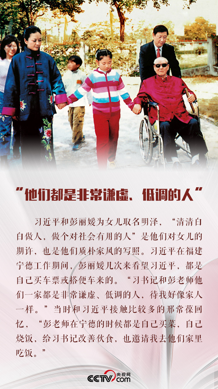 孝敬父母、愛護(hù)妻兒,習(xí)近平把家庭看得很重。他曾在接受媒體采訪時(shí)說,“我有一個(gè)很幸福的家庭,夫妻倆都有自己的事業(yè),但是對(duì)家庭都是共同去建設(shè)這個(gè)家庭。”