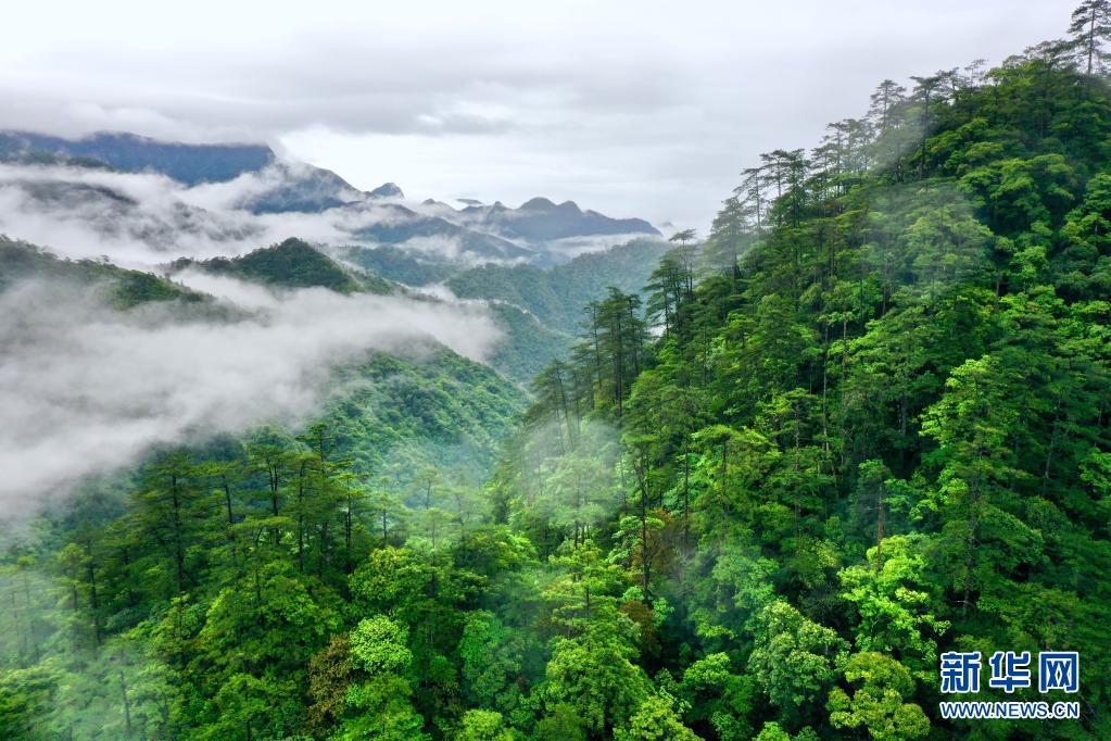 5月18日,武夷山國(guó)家公園桐木村附近群山云霧繚繞(無人機(jī)照片)。新華社記者 姜克紅 攝