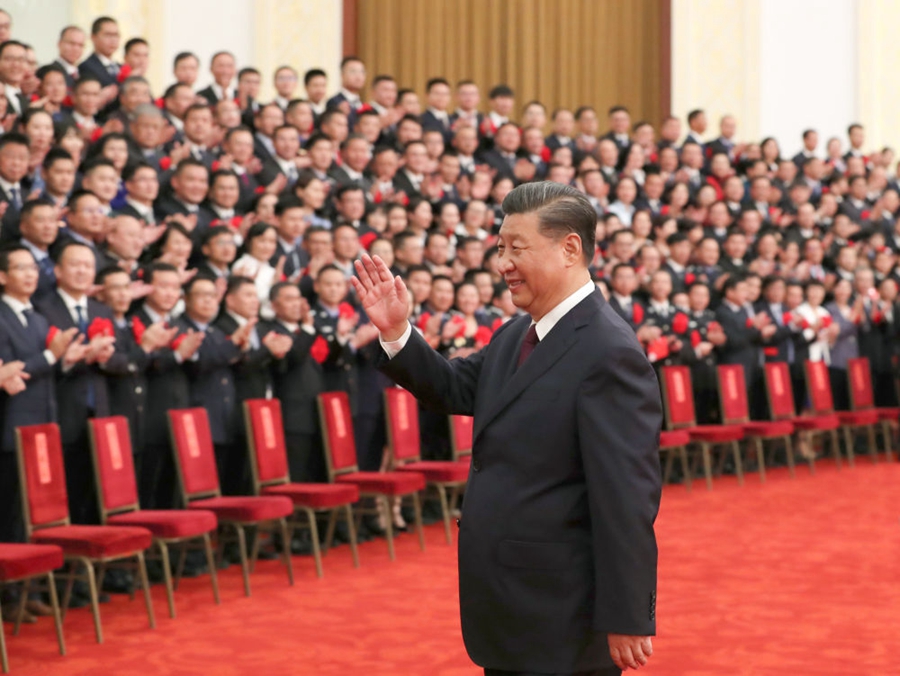 2020年9月8日,全國(guó)抗擊新冠肺炎疫情表彰大會(huì)在北京人民大會(huì)堂隆重舉行。中共中央總書(shū)記、國(guó)家主席、中央軍委主席習(xí)近平在大會(huì)上發(fā)表重要講話。這是會(huì)前,習(xí)近平會(huì)見(jiàn)國(guó)家勛章和國(guó)家榮譽(yù)稱號(hào)獲得者,全國(guó)抗擊新冠肺炎疫情先進(jìn)個(gè)人、先進(jìn)集體代表等,向大家揮手致意。