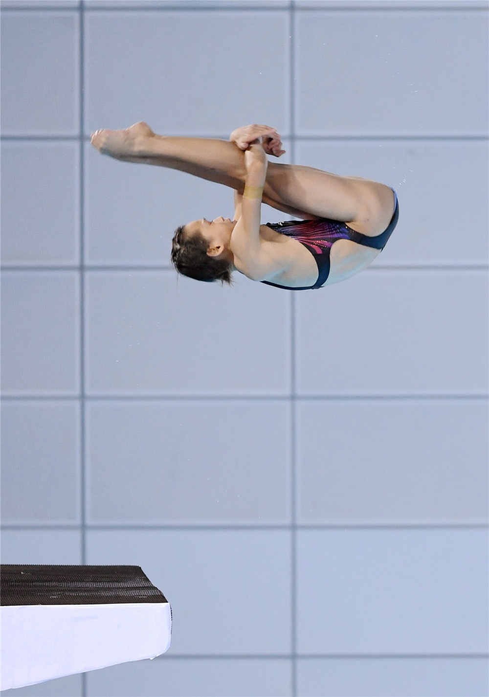 2021年8月5日,全紅嬋在比賽中。當日,在東京奧運會跳水項目女子10米跳臺決賽中,中國選手全紅嬋奪得冠軍。新華社記者 丁旭 攝