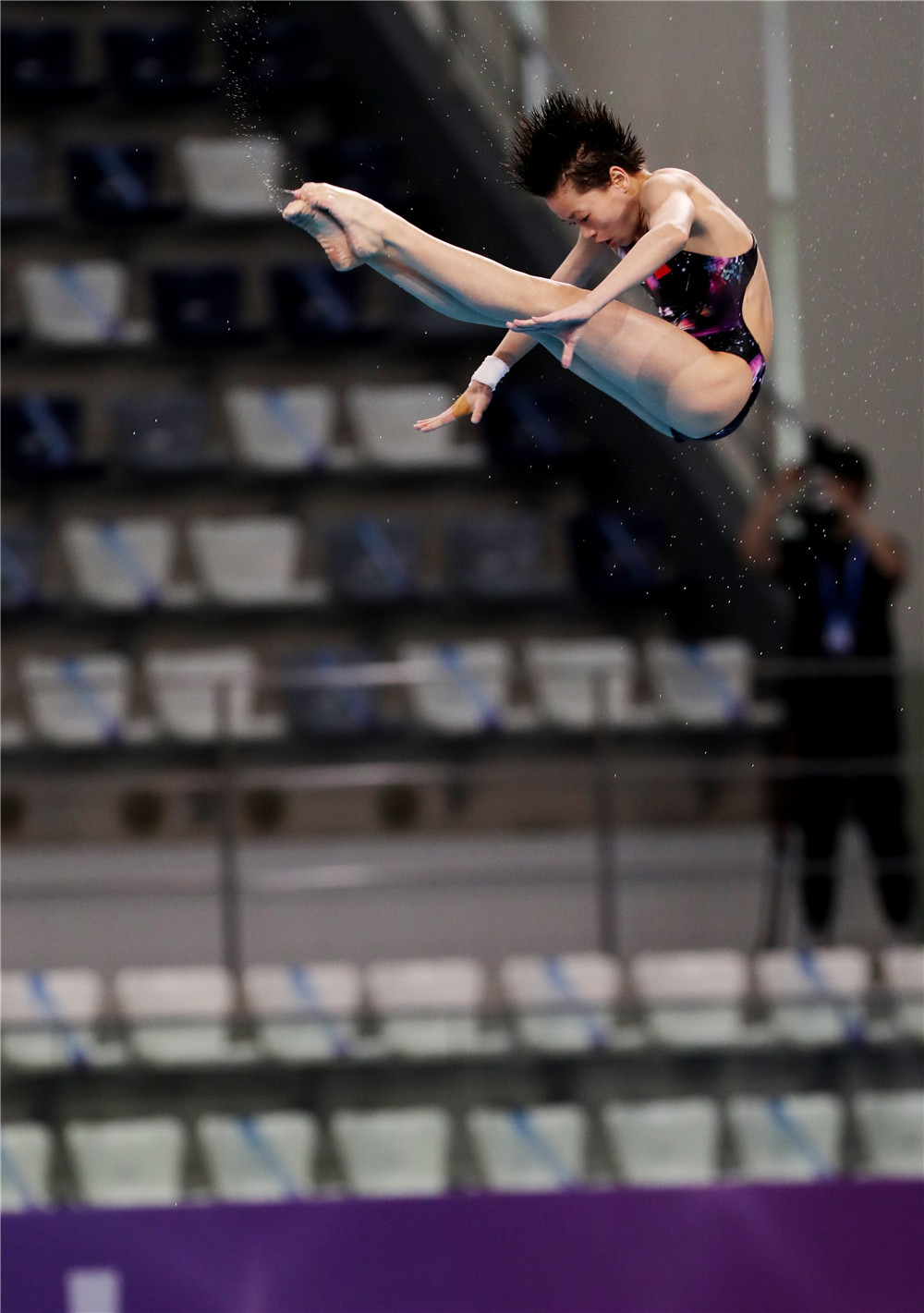 全紅嬋是同伴中第一個登上3米板,接著是5米跳臺、7米跳臺……兩年后,她又是第一個站在10米跳臺上,毫不猶豫地跳下去。