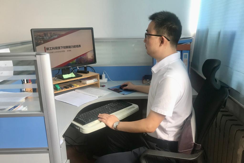 哈爾濱理工大學(xué)自動(dòng)化學(xué)院教師孫明曉進(jìn)行線上授課準(zhǔn)備。受訪者 供圖