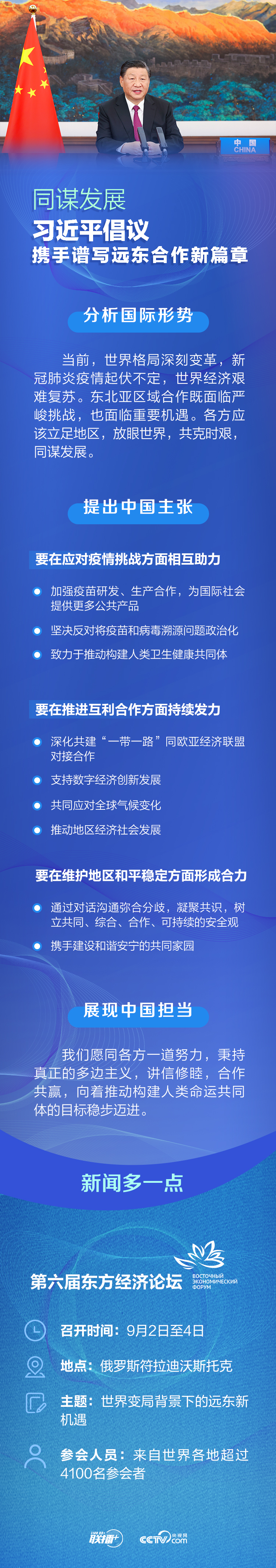 聯(lián)播+9月3日,習(xí)近平主席應(yīng)邀以視頻方式出席第六屆東方經(jīng)濟論壇全會開幕式并發(fā)表題為《共克時艱,同謀發(fā)展 攜手譜寫遠東合作新篇章》的致辭。