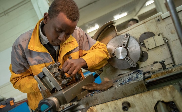 這是2018年8月17日在肯尼亞內(nèi)羅畢,一名學(xué)生維護(hù)機(jī)床。近年來,為了幫助非洲國家培養(yǎng)職業(yè)技術(shù)人才,助力非洲工業(yè)化進(jìn)程,中航國際分別與肯尼亞、烏干達(dá)、贊比亞、加納、加蓬等國教育部合作開展職業(yè)教育項(xiàng)目。新華社記者 張宇 攝