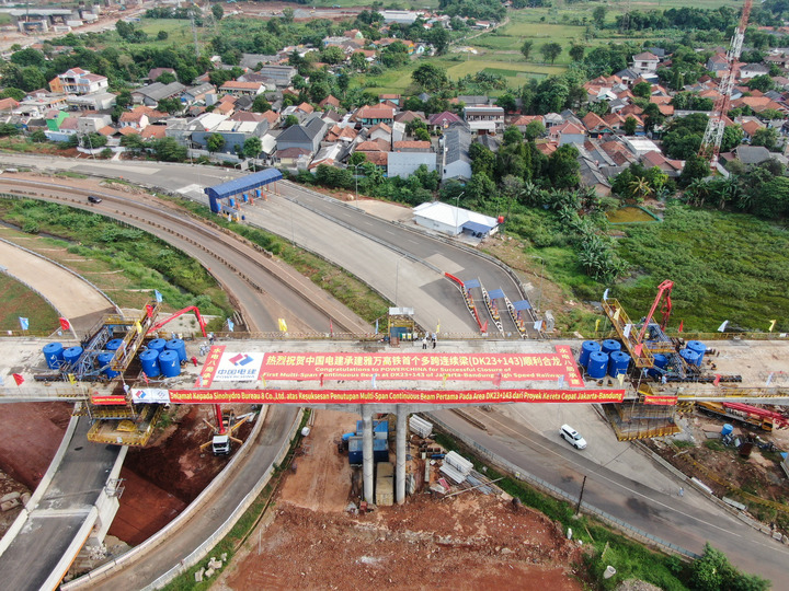 這是2020年5月10日拍攝的印度尼西亞雅萬高鐵首個(gè)多跨連續(xù)梁合龍現(xiàn)場(chǎng)。雅萬高鐵項(xiàng)目是中國高鐵全系統(tǒng)、全要素、全生產(chǎn)鏈走出國門的“第一單”,也是“一帶一路”倡議的標(biāo)志性工程和印尼國家戰(zhàn)略項(xiàng)目。 新華社記者 杜宇 攝