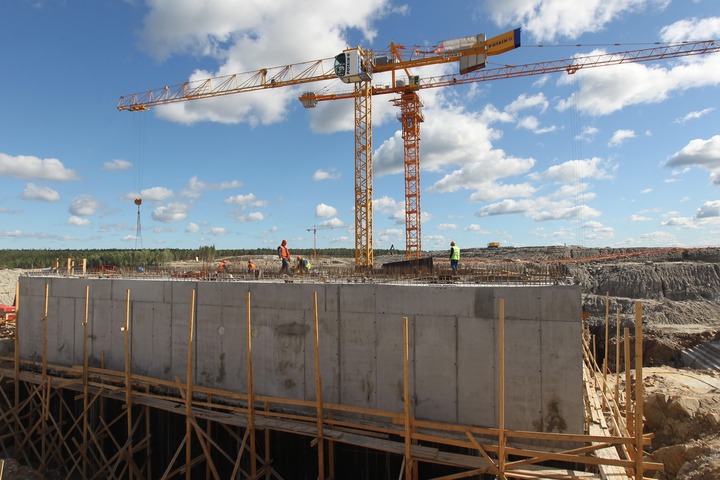 在俄羅斯西北部卡累利阿共和國凱姆河畔,工人在別洛巴羅什水電站施工現(xiàn)場(chǎng)工作(2017年8月15日攝)。別洛巴羅什水電站項(xiàng)目是俄羅斯首個(gè)由金磚國家新開發(fā)銀行提供融資支持的項(xiàng)目。新華社記者 魯金博 攝