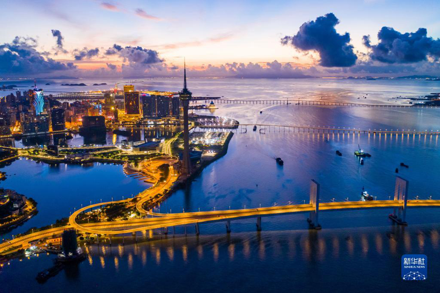 晨曦中的澳門半島(2020年7月29日攝,無(wú)人機(jī)照片)。新華社記者 張金加 攝