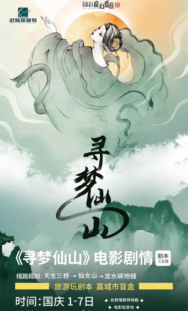 作為國(guó)內(nèi)熱門(mén)的影視取景地,武隆憑借獨(dú)特的自然風(fēng)光,吸引了包括《滿(mǎn)城盡帶黃金甲》、《變形金剛4》、《爸爸去哪兒2》、《三生三世十里桃花》、《我們十七歲》等眾多影視及綜藝節(jié)目到此拍攝取景,現(xiàn)已成為重慶旅游的文化名片。鬼斧神工的自然景觀,加上濃郁的影視文化氛圍,讓《尋夢(mèng)仙山》沉浸式劇本殺更新奇和神秘。國(guó)慶出發(fā)去武隆玩“劇本殺”,讓我們拭目以待吧!