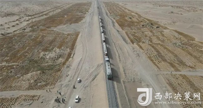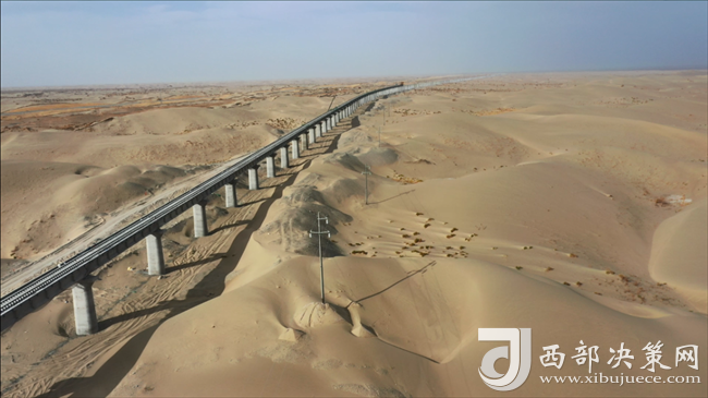 西部決策網(wǎng)訊 9月27日上午,在新建和田至若羌鐵路新疆民豐縣境內段的施工現(xiàn)場,隨著直鋪機將最后60米鋼軌推進落地,由中鐵第一勘察設計院集團有限公司總體勘察設計的和若鐵路宣告鋪軌完成,標志著世界上首條環(huán)沙漠鐵路正式閉環(huán)。