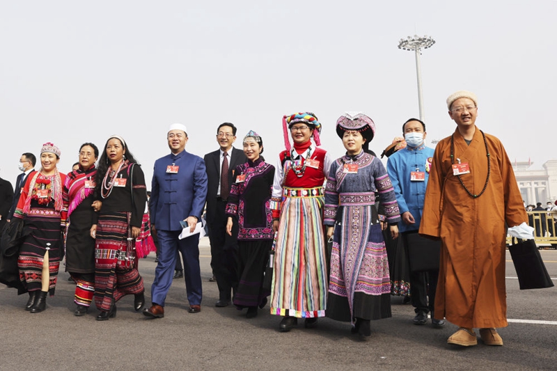 △2021年3月4日,中國(guó)人民政治協(xié)商會(huì)議第十三屆全國(guó)委員會(huì)第四次會(huì)議在北京人民大會(huì)堂開幕。這是全國(guó)政協(xié)委員走向會(huì)場(chǎng)。