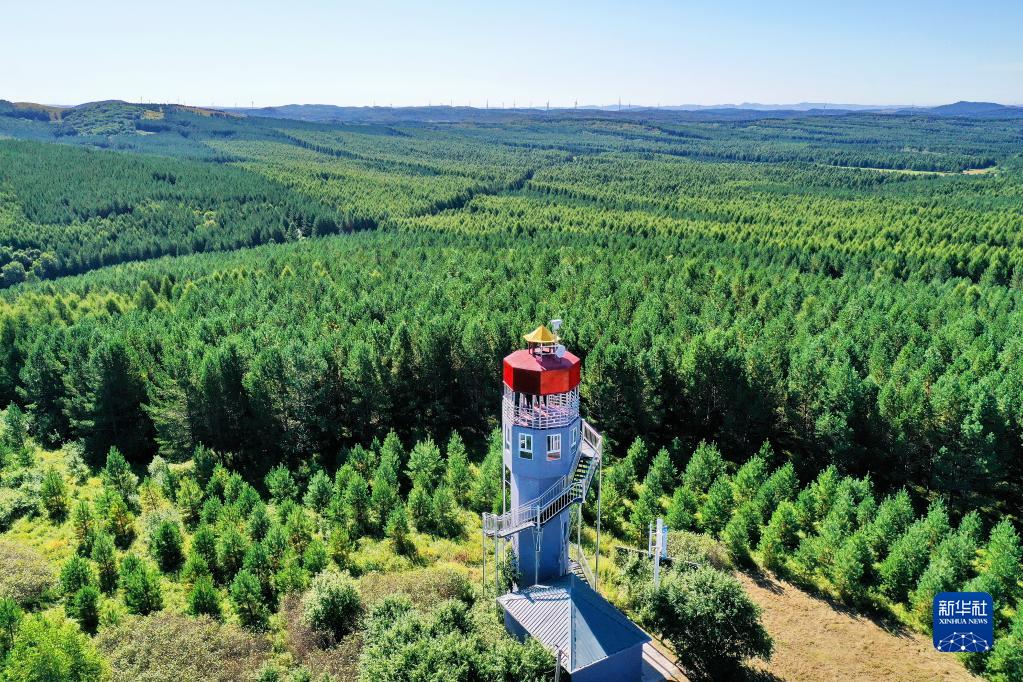 河北塞罕壩機(jī)械林場內(nèi)的望海樓(8月23日攝,無人機(jī)照片)。新華社記者 牟宇 攝