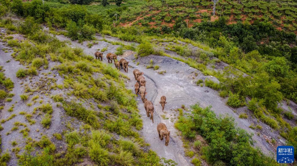 2021年6月7日在云南昆明市晉寧區(qū)夕陽彝族鄉(xiāng)拍攝的野象(無人機照片)。新華社發(fā)