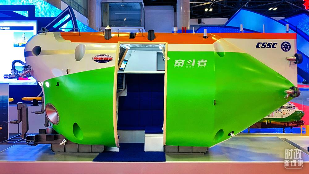 △“奮斗者”號全海深載人潛水器模型。(總臺央視記者范一鳴拍攝)