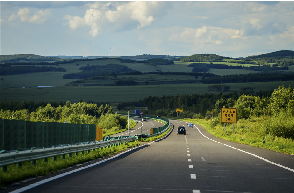 8月6日,汽車行駛在鄂倫春自治旗境內(nèi)的G332國道上。新華社記者 連振 攝