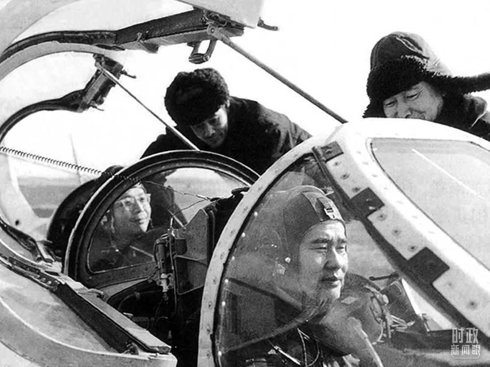 △顧誦芬(后座)乘戰(zhàn)斗機(jī)上天,直接跟在殲-8飛機(jī)后面觀察振動(dòng)情況。(資料圖)