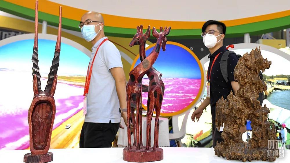 △2021年9月,湖南長(zhǎng)沙,第二屆中非經(jīng)貿(mào)博覽會(huì)上展出的塞內(nèi)加爾工藝品。(圖/視覺中國)
