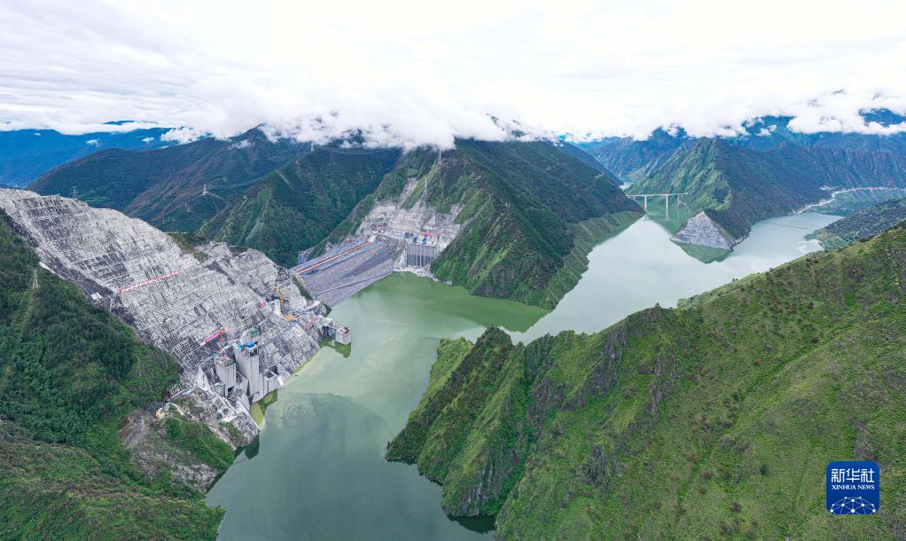 這是雅礱江兩河口水電站一角,兩河口水電站是國家和四川省重點工程、西部大開發(fā)優(yōu)化能源供給側(cè)結(jié)構(gòu)性調(diào)整的戰(zhàn)略工程(7月15日攝,無人機照片)。新華社發(fā)