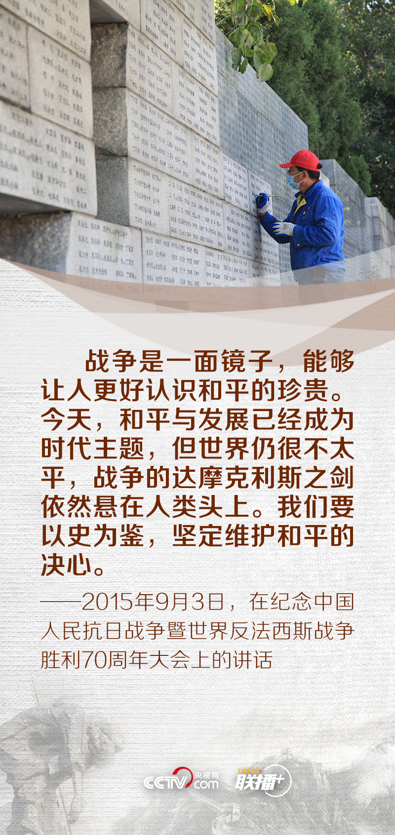 昭昭前事,惕惕后人;永矢弗諼,祈愿和平。在第八個(gè)南京大屠殺死難者國(guó)家公祭日來(lái)臨之際,央視網(wǎng)《聯(lián)播+》特梳理黨的十八大以來(lái)總書記關(guān)于銘記歷史、珍愛和平的重要論述,與您一同緬懷逝者,堅(jiān)定維護(hù)和平的決心。