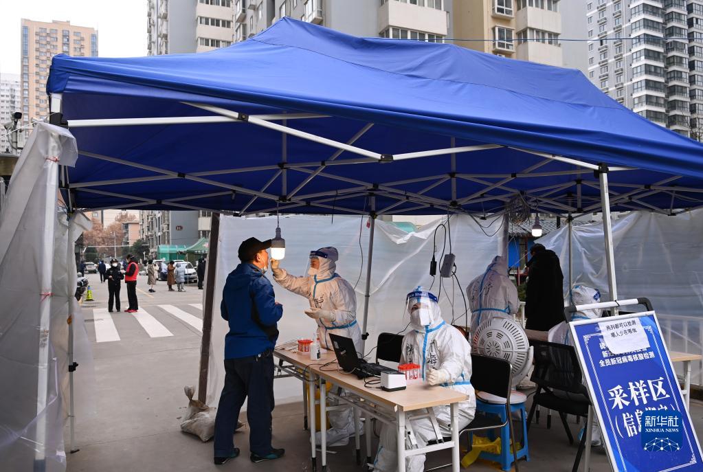 12月27日,在西安市碑林區(qū)張家村街道太白社區(qū),居民在接受核酸檢測。新華社記者 陶明 攝