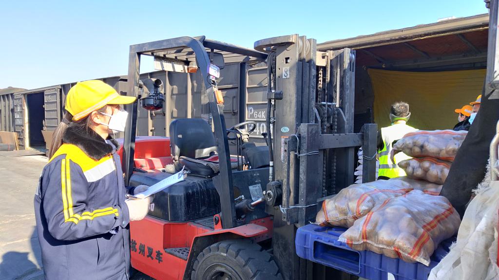 西安鐵路局西安西站貨物裝卸人員正在抓緊卸車(chē)。(照片由受訪(fǎng)者提供)