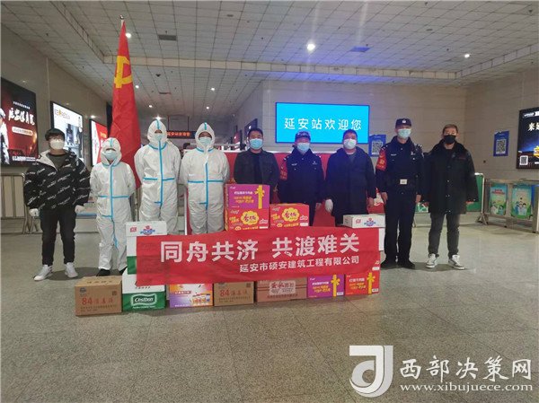 下午16時(shí),延安市碩安建筑工程有限公司一行三人攜帶方便面、火腿腸、面包、飲料等慰問品來到延安火車站,向正在執(zhí)勤的民警、輔警表示感謝,同時(shí)提醒民警、輔警及防疫人員做好自身防護(hù)。企業(yè)負(fù)責(zé)人表示:延安鐵警舍小家、為大家,守護(hù)群眾的平安健康,這些防疫物資代表著我們對(duì)民、輔警及所有防疫工作人員的關(guān)心和敬意!