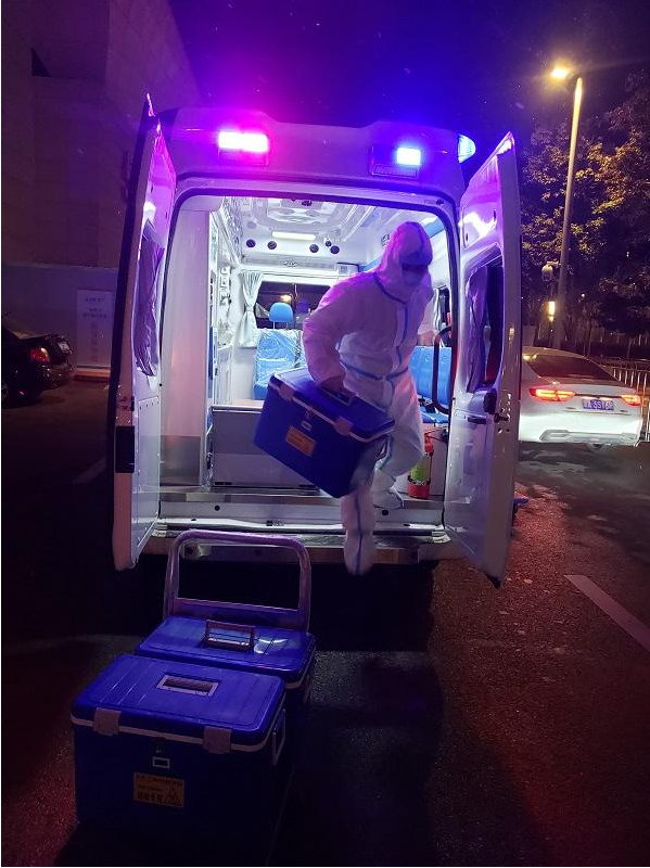 片刻休整后,劉鵬飛和隊(duì)員們又驅(qū)車投入轉(zhuǎn)運(yùn)核酸檢測(cè)樣本的任務(wù)……