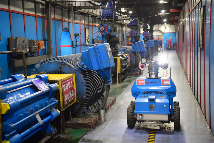 曹家灘智慧礦山井下的中央水泵房智能巡檢機器人在巡檢。 新華社記者邵瑞 攝