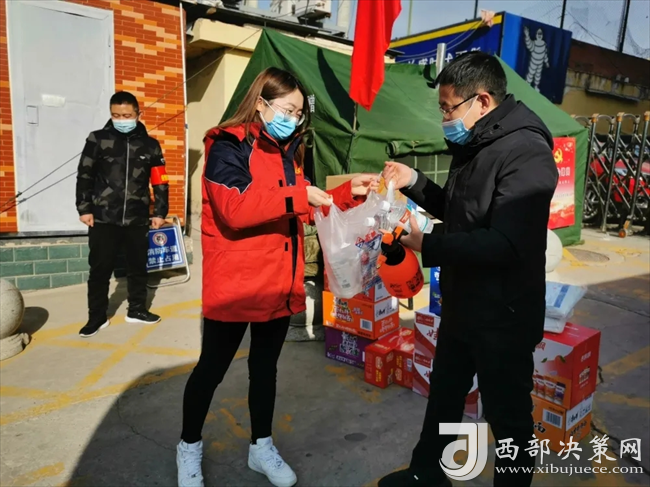 西部決策網(wǎng)訊(薛寶貴 通訊員 高源滋)點(diǎn)滴真情,彰顯大愛(ài)。1月3日,延安市巾幗建功標(biāo)兵、志丹采油廠機(jī)修車間職工、巾幗志愿者張陽(yáng)同志來(lái)到延安市志丹縣紫程佳苑B座小區(qū)看望慰問(wèn)奮戰(zhàn)在一線的防疫人員,為他們送上消毒液、口罩、手套等防疫物資和棉大衣、方便面、奶茶飲品等慰問(wèn)品,并向元旦期間仍然堅(jiān)守在防控一線的值勤人員致以崇高的敬意和誠(chéng)摯的問(wèn)候。