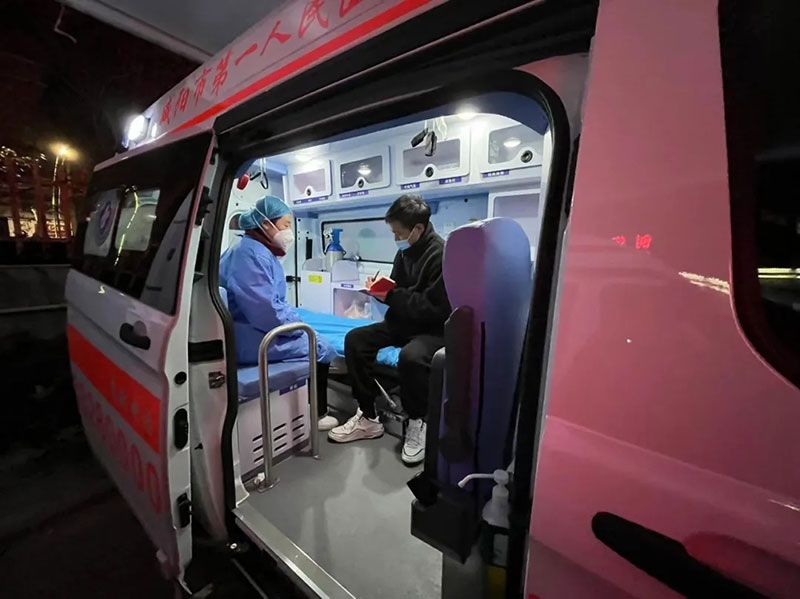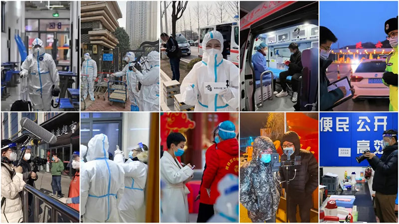 2022年1月4日,人民日?qǐng)?bào)社記者原韜雄(左一)在新冠確診病例收治點(diǎn)西安市胸科醫(yī)院采訪。