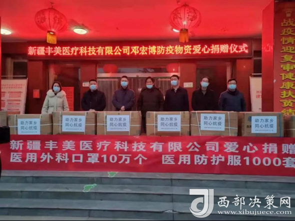 西部決策網(wǎng)訊 1月7日,在陜西省扶風(fēng)縣委政法委的組織協(xié)調(diào)下,新疆豐美醫(yī)療科技有限公司防疫物資捐贈(zèng)儀式在扶風(fēng)縣衛(wèi)健局辦公樓前舉行。扶風(fēng)縣委副書記張湛林,縣委常委、政法委書記張萬(wàn)鋒出席捐贈(zèng)儀式。