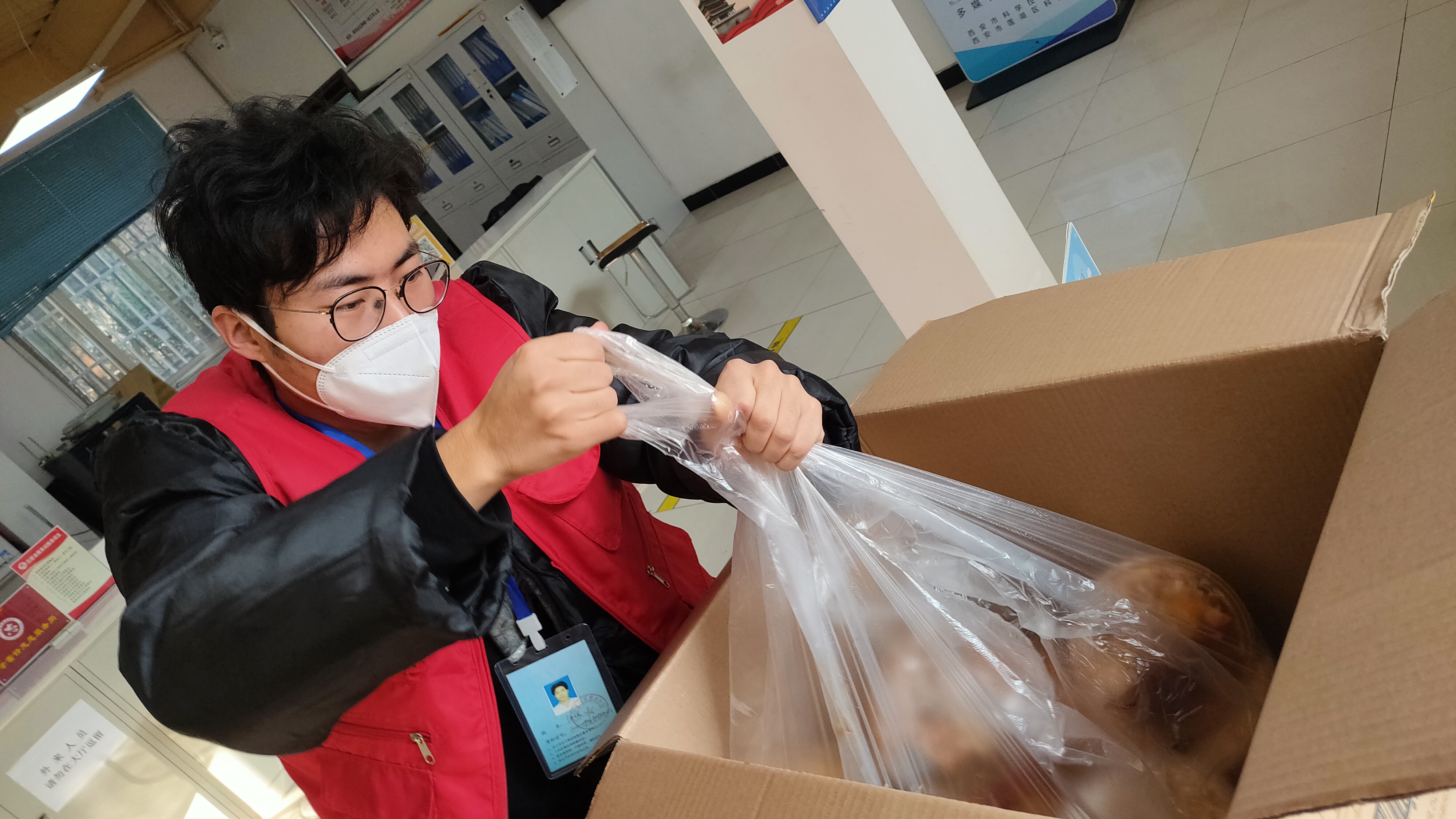 陸遠(yuǎn)在社區(qū)整理物資。(受訪者提供)