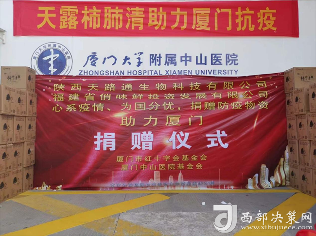 而這也并不是“天露柿肺清”口服液第一次出現(xiàn)在抗疫第一線。早在2021年9月29日,陜西天路通生物科技有限公司就為廈門中山醫(yī)院捐獻(xiàn)過一批抗疫物資,捐贈了價值20多萬“天露柿肺清”口服液作為抗疫物資,支援中山醫(yī)院的一線醫(yī)護人員們,助力廈門抗疫。當(dāng)時正值廈門中山醫(yī)院抗擊新冠肺炎疫情的緊要關(guān)頭,天路通生物科技有限公司及時伸出援助之手,無償捐贈抗疫物資,為打贏疫情防控阻擊戰(zhàn)增強了信心和力量。病毒無情,八方友愛,仁者愛人,彰顯出企業(yè)的愛國情懷和社會責(zé)任,展現(xiàn)了人間大愛,脈脈溫情。