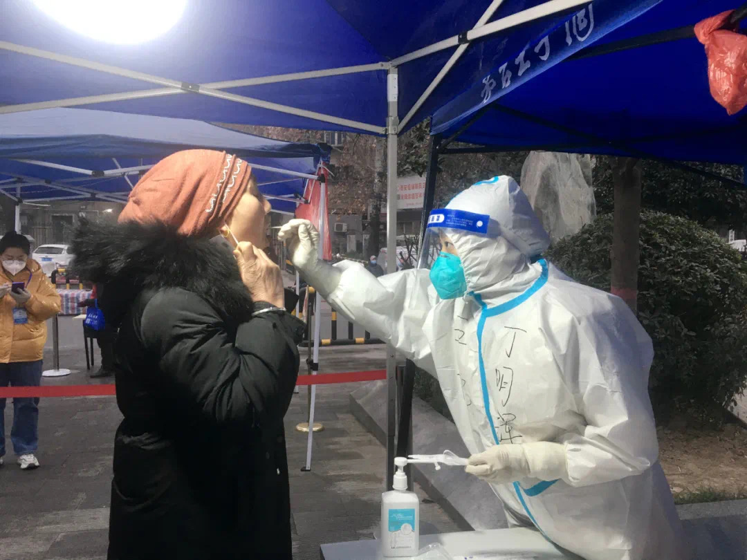 第二次婚期定于12月18日,14日丁明輝在科室交接完手頭工作,開始休假籌備婚禮事宜。晚7點回到家就聽說長安大學出現(xiàn)疫情,整個學校連夜進行核酸檢測。她深知,兇猛的疫情此時更需要醫(yī)務工作者,需要自己。第二天她在社區(qū)完成自己的核酸檢測,得到陰性報告后,遂結(jié)束休假返回醫(yī)院上班,此后服從醫(yī)院派遣多次外出執(zhí)行核酸采集任務,并于25日起開始留住醫(yī)院準備參加定點醫(yī)院支援。后因任務調(diào)整,2022年1月2日晚來到回民街市五院第10核酸采樣隊,開始和同事一起執(zhí)行廟后街社區(qū)及市區(qū)多處核酸采集工作至今。