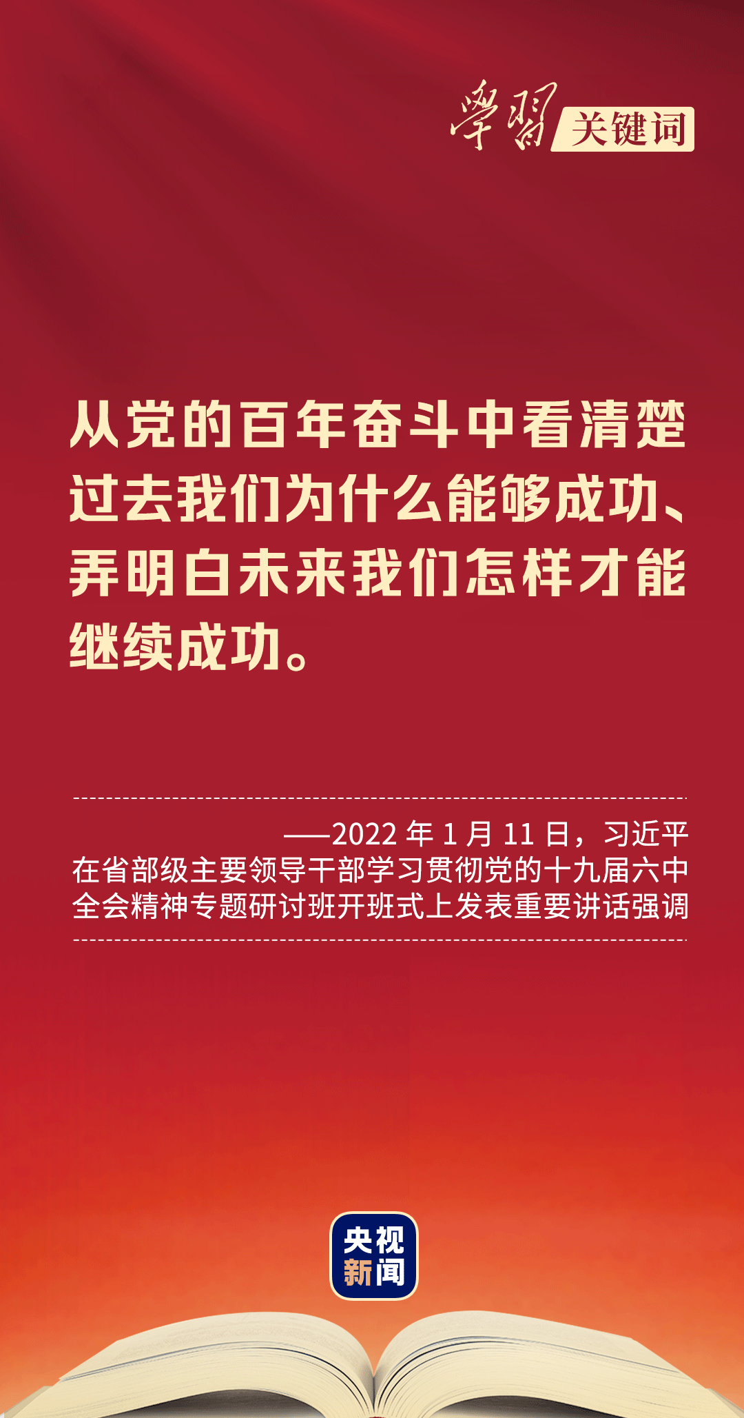 “從黨的百年奮斗中看清楚過(guò)去我們?yōu)槭裁茨軌虺晒?、弄明白未?lái)我們?cè)鯓硬拍芾^續(xù)成功,從而更加堅(jiān)定、更加自覺(jué)地踐行初心使命,在新時(shí)代更好堅(jiān)持和發(fā)展中國(guó)特色社會(huì)主義。”