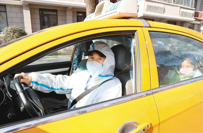 連日來,我市不少出租車司機奔波在抗疫一線,承擔核酸樣本轉運、送醫(yī)送藥、拉載特需人群出行等工作。圖為一位出租車司機將就診乘客送達西安市醫(yī)學院第二附屬醫(yī)院。 (記者 翟小雪 攝)