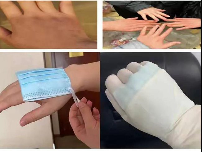 冬季的室外,還要反復(fù)進(jìn)行手部消毒,一天工作下來,核酸采樣隊隊員們的手都被凍得像石頭一樣,又紅又腫。為了解決這個問題,北關(guān)核酸采樣隊隊長解林清輾轉(zhuǎn)反側(cè),終于想到可以把外科手套折疊后墊到手背關(guān)節(jié)部位,取得保暖的效果。經(jīng)過實踐操作,這項技術(shù)已經(jīng)在各核酸采樣隊伍內(nèi)推廣使用。