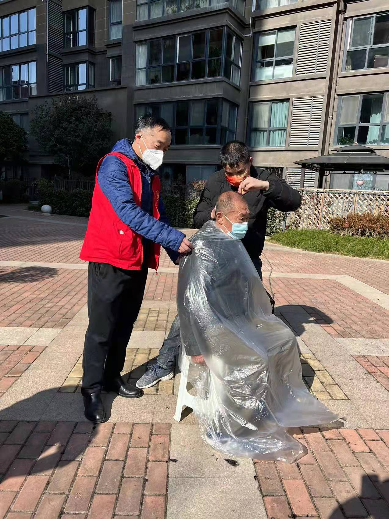 當(dāng)天,在做好疫情防控的情況下,三位理發(fā)師小伙子整整工作了一天,為小區(qū)里的老人、孩子等70多位進(jìn)行了愛(ài)心義剪。