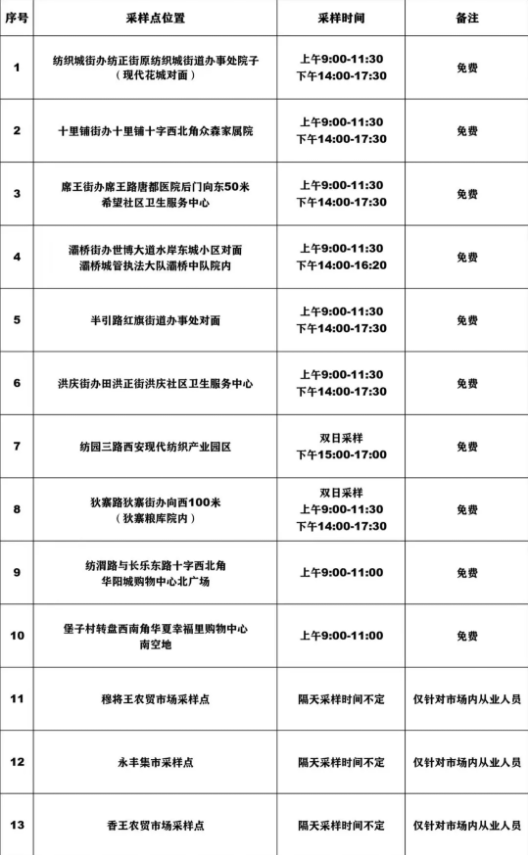 結(jié)合當(dāng)前疫情防控總體形勢(shì),為進(jìn)一步做好復(fù)工復(fù)產(chǎn)和社會(huì)保供等方面保障工作,我市這些區(qū)域設(shè)置核酸檢測(cè)采樣點(diǎn)位,滿足市民需求。