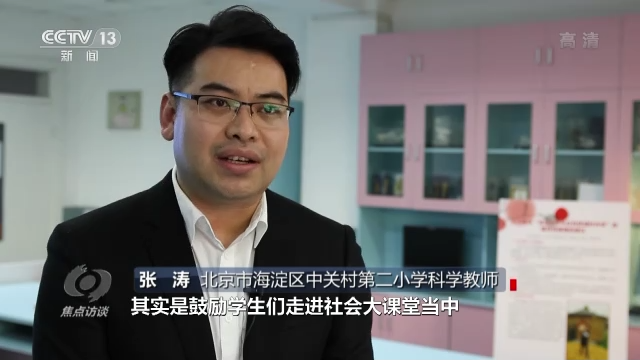 北京市海淀區(qū)中關(guān)村第二小學(xué)科學(xué)教師張濤說:“在這個(gè)過程當(dāng)中,其實(shí)是鼓勵(lì)學(xué)生們走進(jìn)社會(huì)大課堂當(dāng)中,去發(fā)現(xiàn)生活中的一些科學(xué)問題,收集一手資料,去解決科學(xué)問題。”