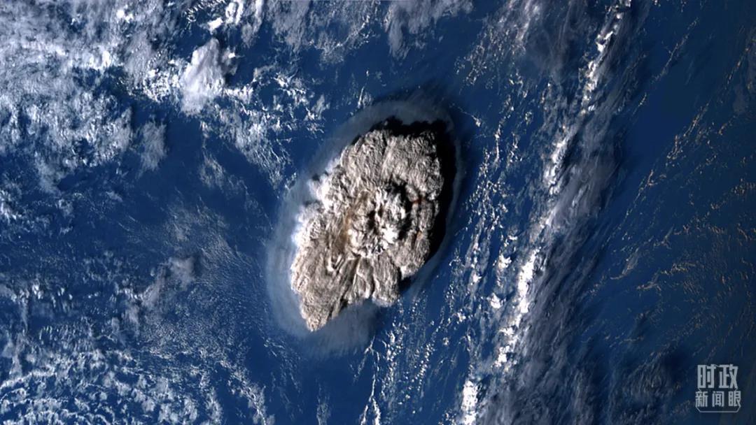 △2022年1月15日,湯加洪阿哈阿帕伊島發(fā)生火山噴發(fā),大量火山灰、氣體與水蒸氣進(jìn)入高空形成巨大云團(tuán),噴發(fā)至高空20千米處。(圖/視覺中國)