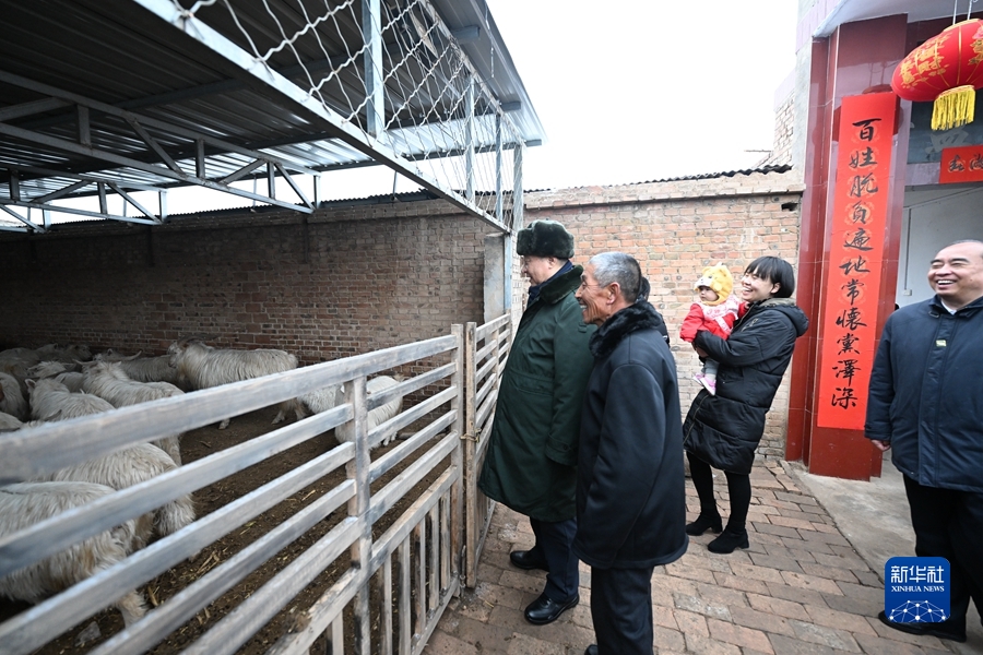 1月26日至27日,中共中央總書記、國家主席、中央軍委主席習(xí)近平來到山西,看望慰問基層干部群眾。這是26日下午,習(xí)近平在臨汾市汾西縣僧念鎮(zhèn)段村蔡文明家察看羊圈。新華社記者 李學(xué)仁 攝