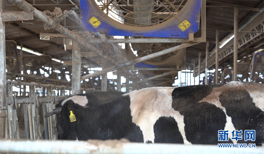 重慶市合川區(qū)太和鎮(zhèn)天合牧場,智能噴頭正在給奶牛噴淋降溫。新華網(wǎng) 馬天龍 攝