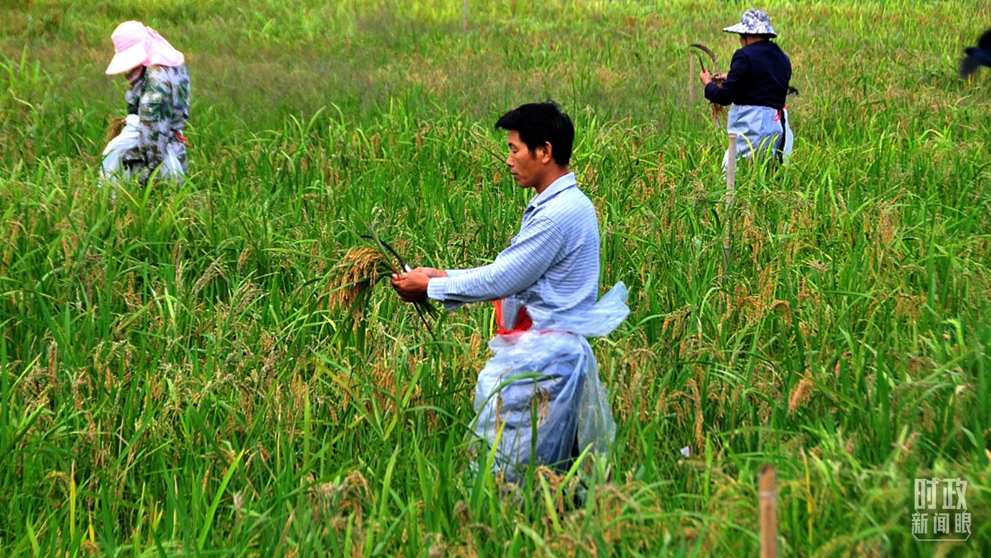 △湖南雜交水稻研究中心海南基地,育種工作者正對(duì)成熟的雜交水稻進(jìn)行抽種。(圖/視覺中國(guó))