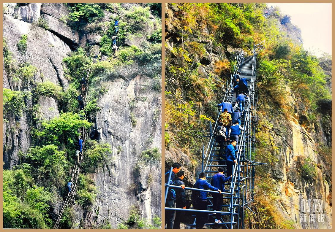 △益西達(dá)瓦委員展示的懸崖村對(duì)比圖。(總臺(tái)央視記者盧心雨、趙化拍攝)